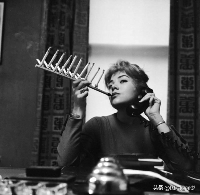 05:上世纪五十年代,曾经有一种特殊的吸烟设备,如果你想一次吸20支香烟的话,它可以帮助你,这是当时著名的模特弗朗西丝·理查兹于在1955年拍摄的,展示了这种吸烟设备的效率。