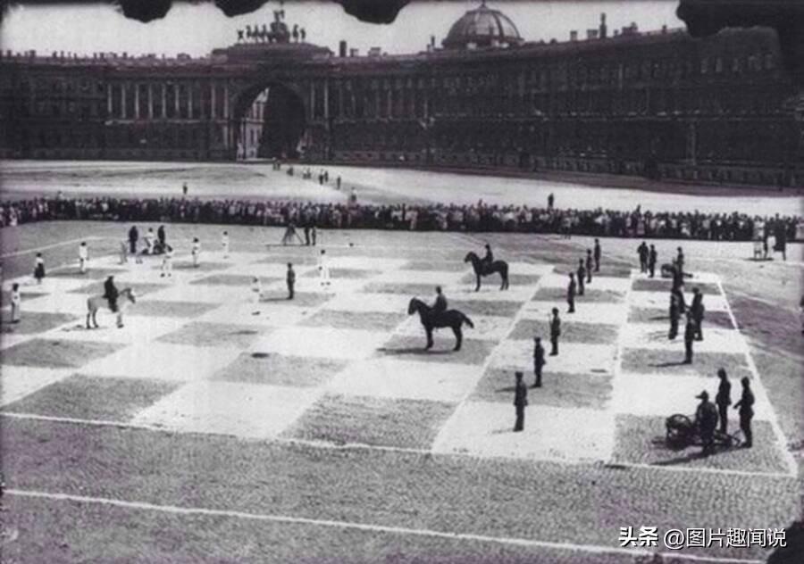 10:为促进苏联的国际象棋比赛,100年前苏联在圣彼得堡举行了一场特殊的比赛。当时的国际象棋大师彼得·罗曼诺夫斯基和伊利亚·拉比诺维奇对弈,而双方棋子则是苏联红军的成员(黑色)和海军成员(白色),马也是真正的战马,比赛总共进行了5个小时。