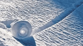 数百个雪球从雪中自发生长,然后满地打滚