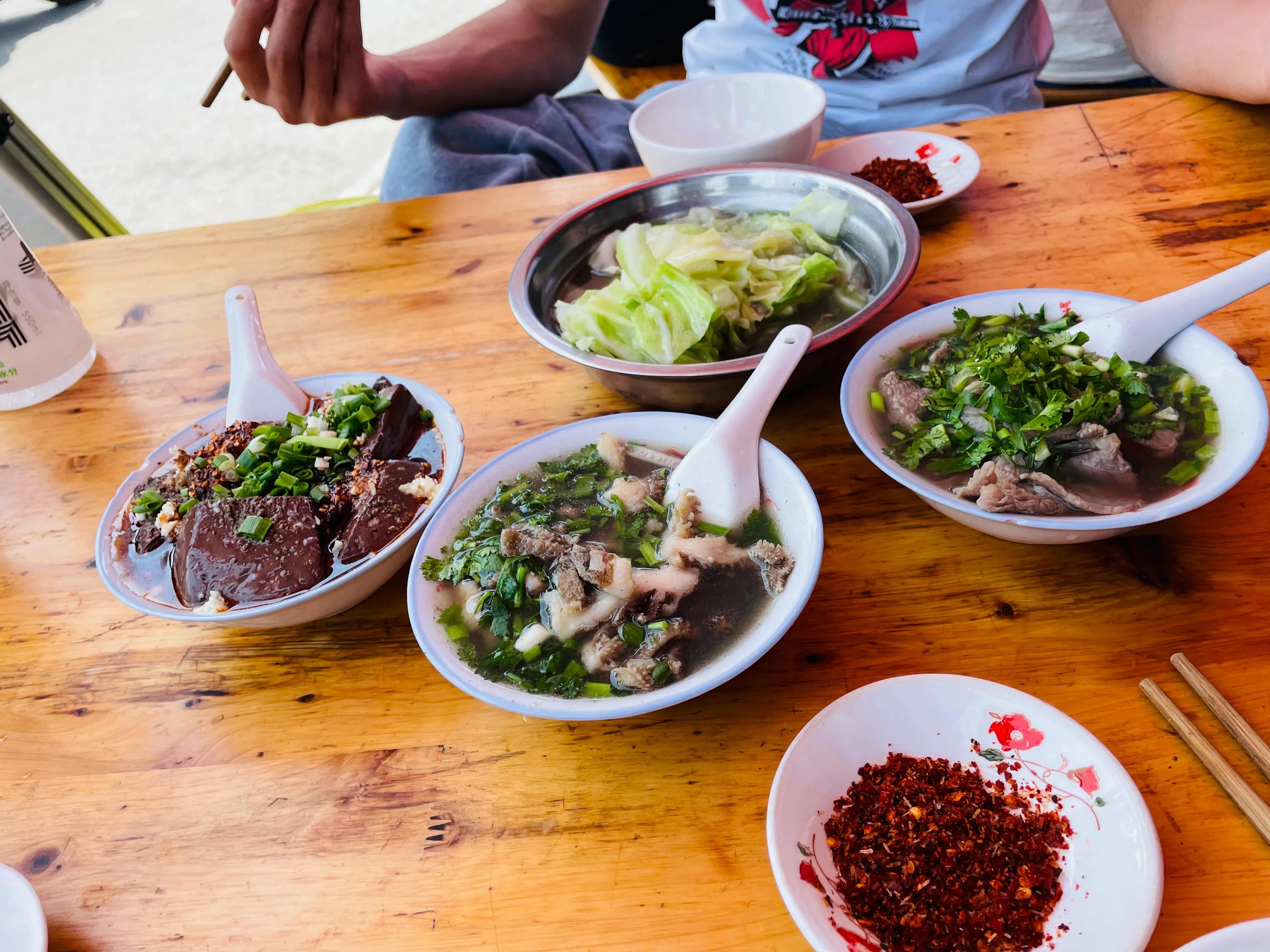 我觉得跷脚牛肉必点的一定是牛肉,牛杂,血旺及素莲花白,不是我抠门儿,肚子还要留给其他特色小吃。