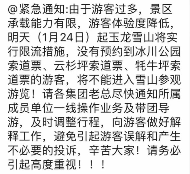 玉龙雪山:玉龙雪山将在今日紧急限流
